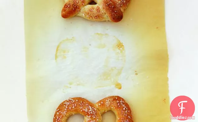 Transfer the pretzels to a rack. While hot, brush on the butter.