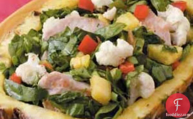 Cut pineapple in half and remove fruit, leaving 1-in. shells; set shells aside for serving.