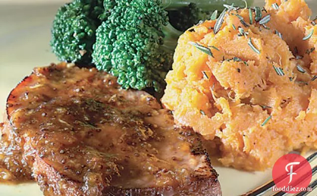 Skillet Ham with Ginger-Peach Glaze might be just the main course you are searching for. Watching your figure? This gluten free and dairy free recipe has 225 calories, 19g of protein, and 14g of fat per serving. This recipe serves 4. This recipe covers 9% of your daily requirements of vitamins and minerals. If you have brown sugar, grain dijon mustard, 3%-less-sodium ham, and a few other ingredients on hand, you can make it. To use up the peach you could follow this main course with the Peach Pie as a dessert.